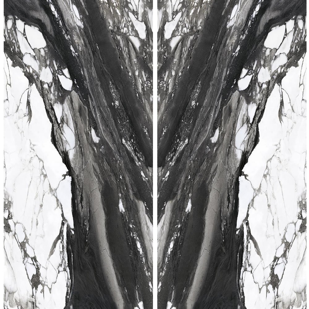A beautiful abstract style of marble that combines white and black streaks that seem to wash over one another creating fluid movement.