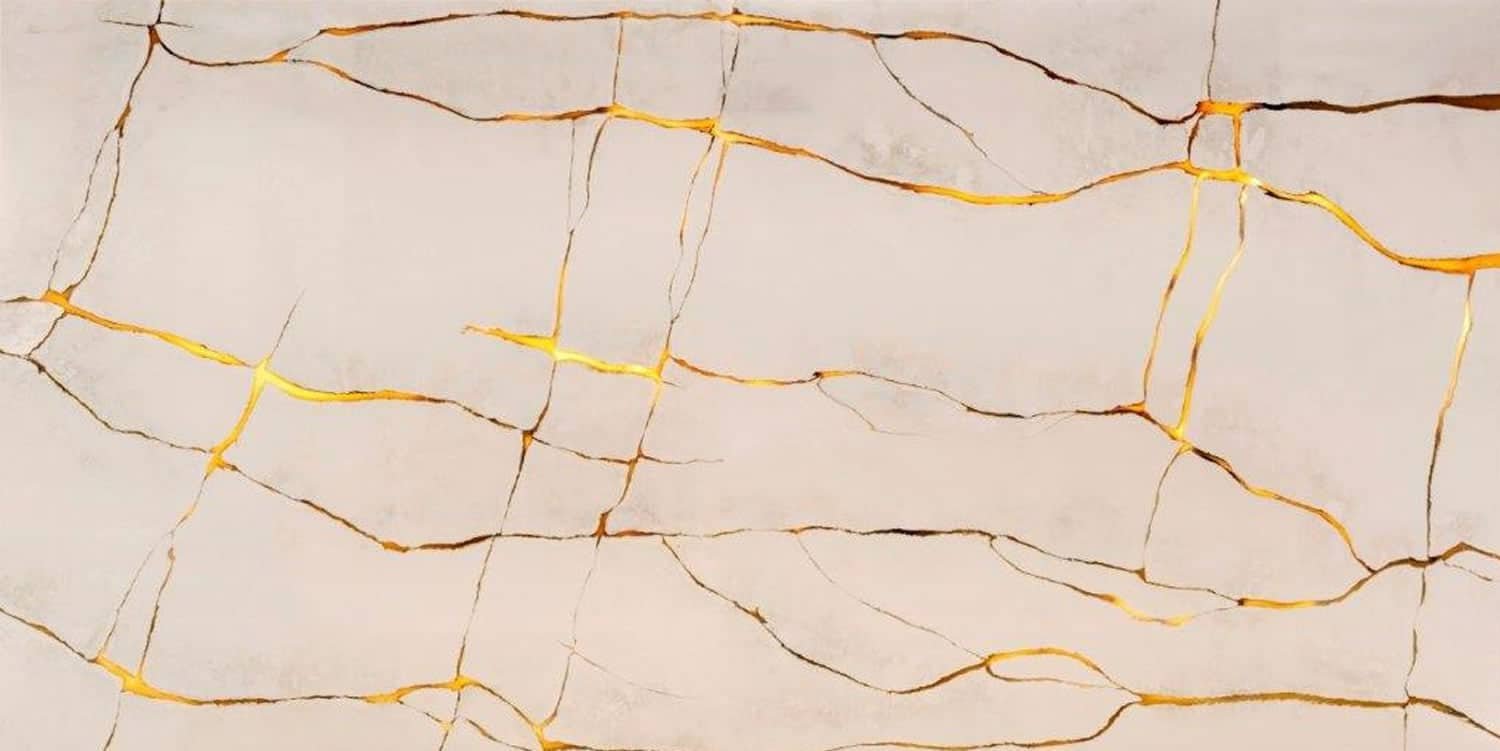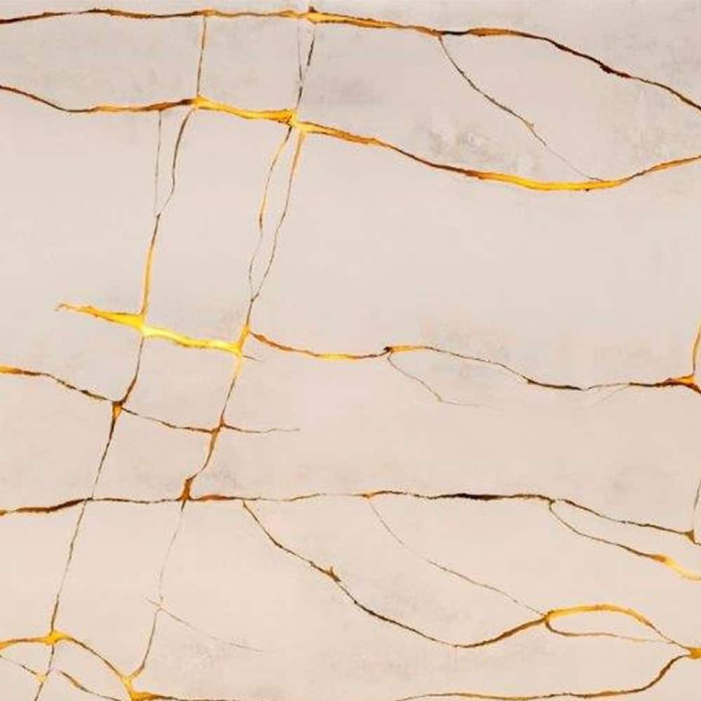 A deep beige color cut through by veins of gold and copper.