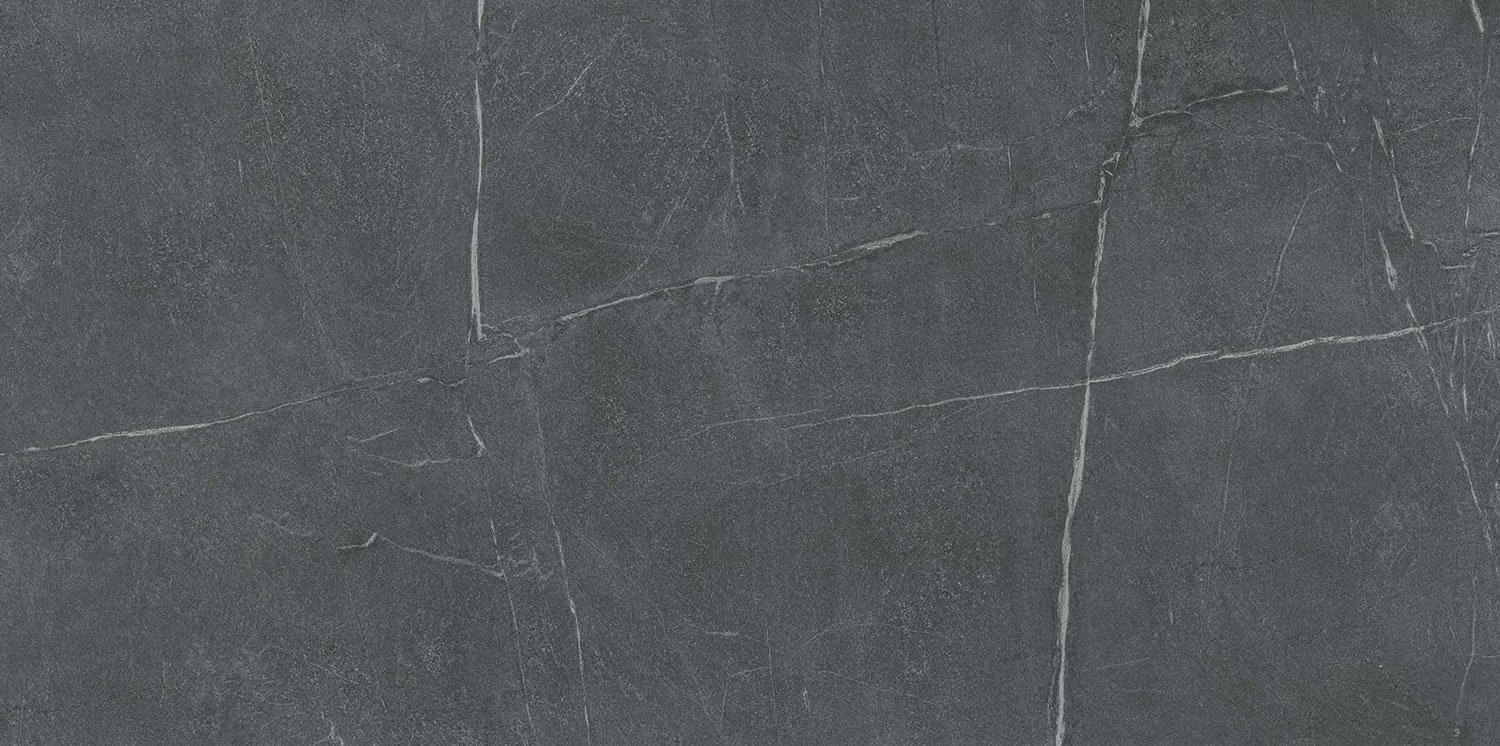 Characterized by a dusty-looking anthracite gray background typical of metamorphic stone, etched with deep ice-white veins.
