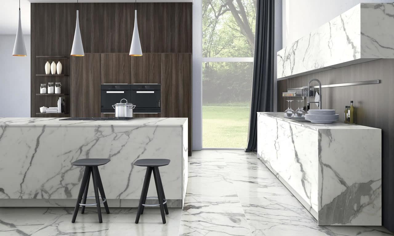 Porcelain slabs can be cut to fit any space including countertops, floors, backsplashes and fire place surrounds.